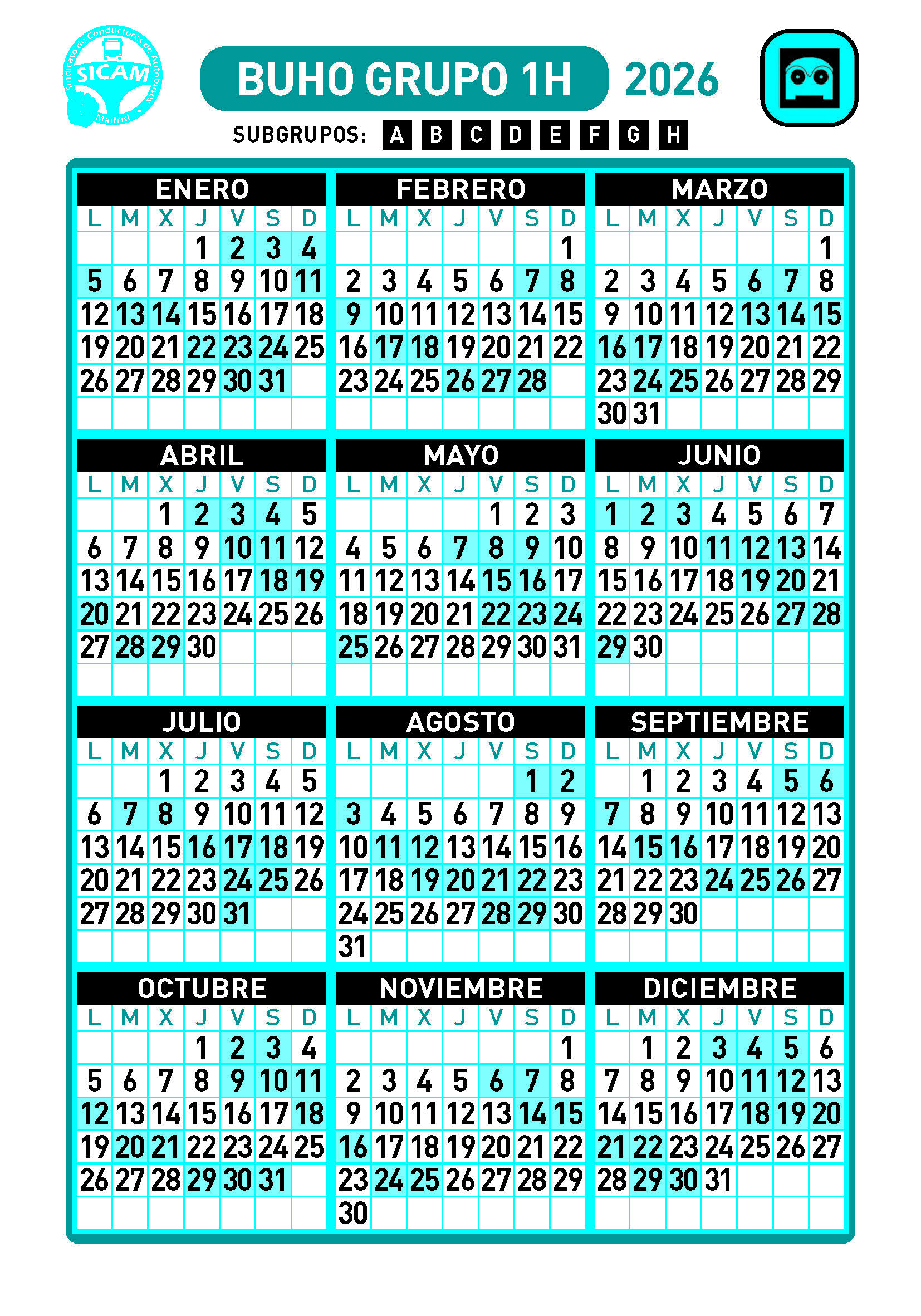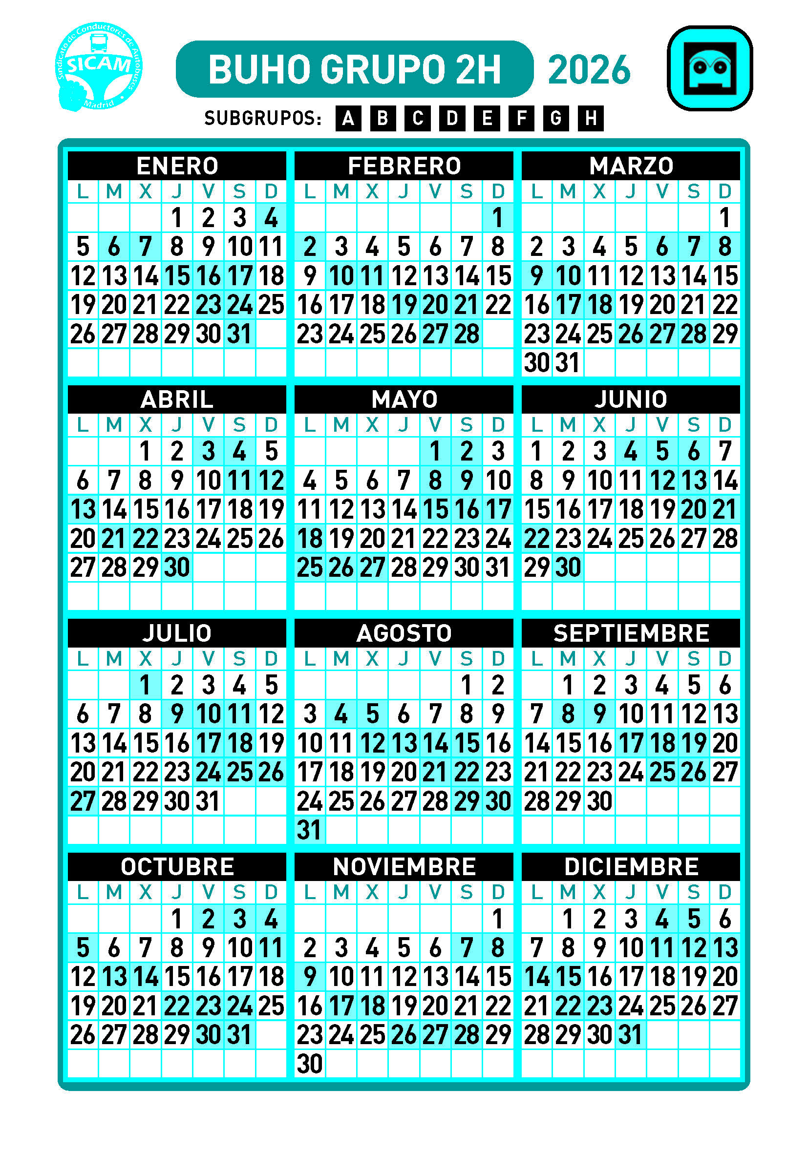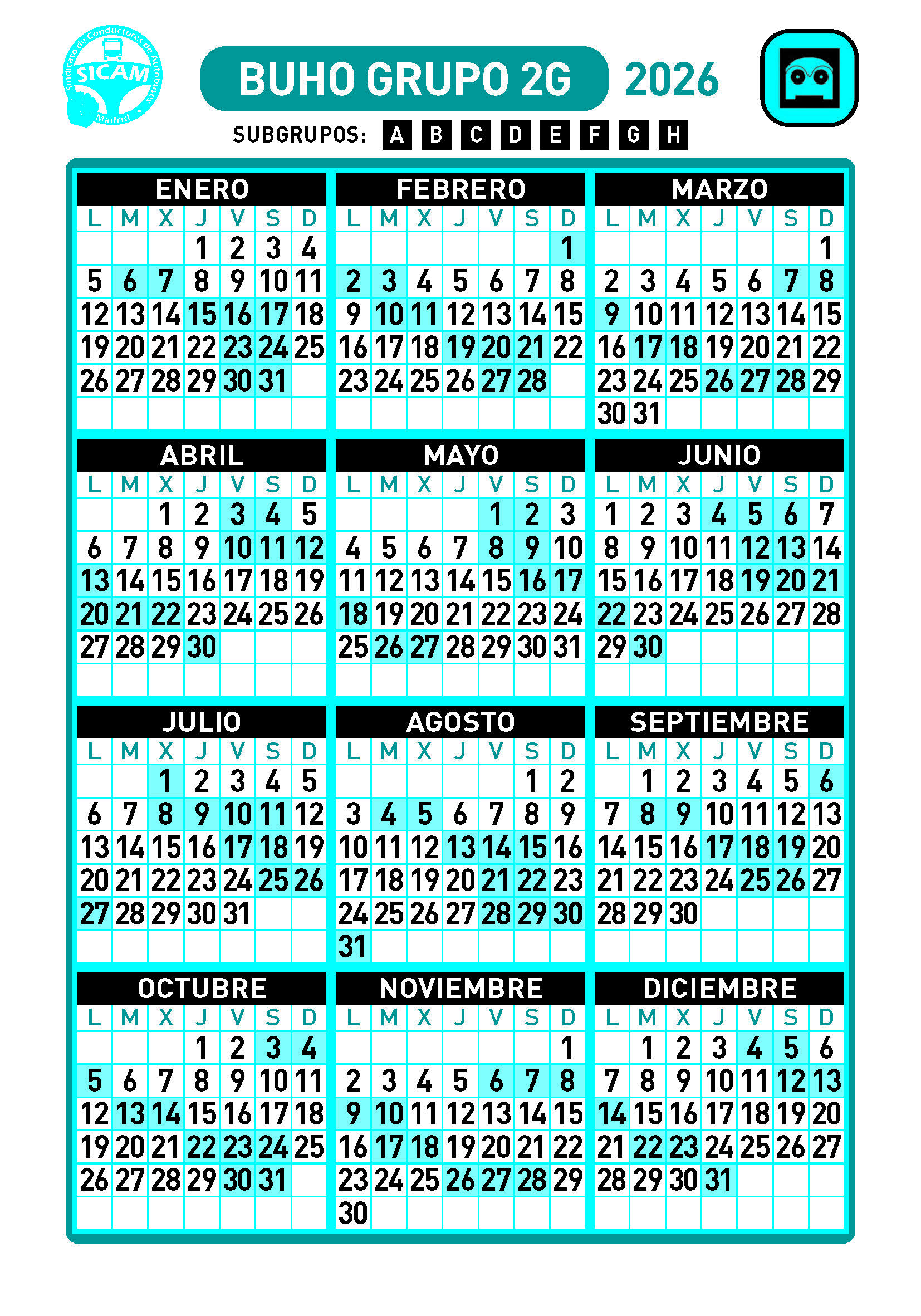 GRUPOS DE LIBRES DIURNOS 2026