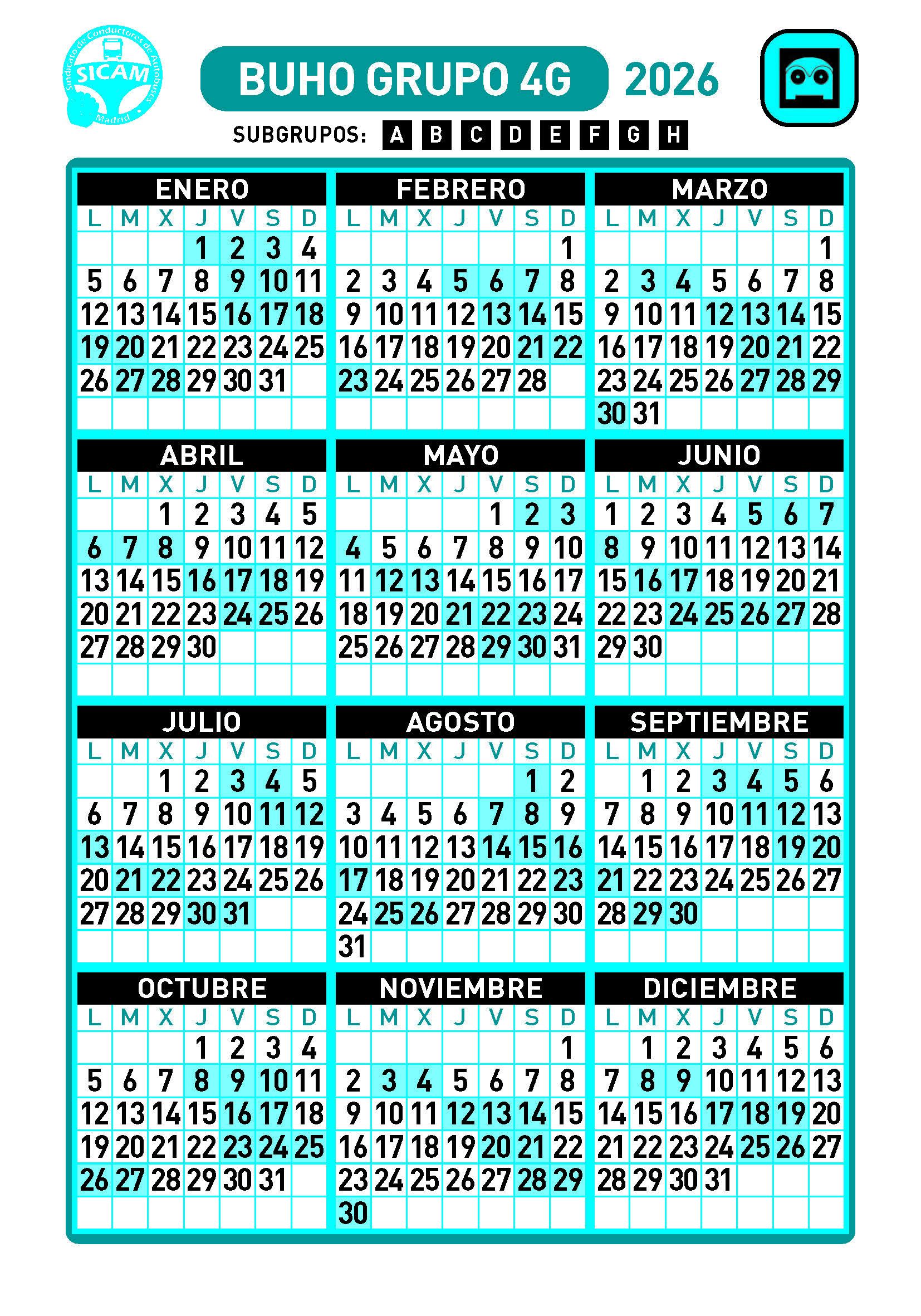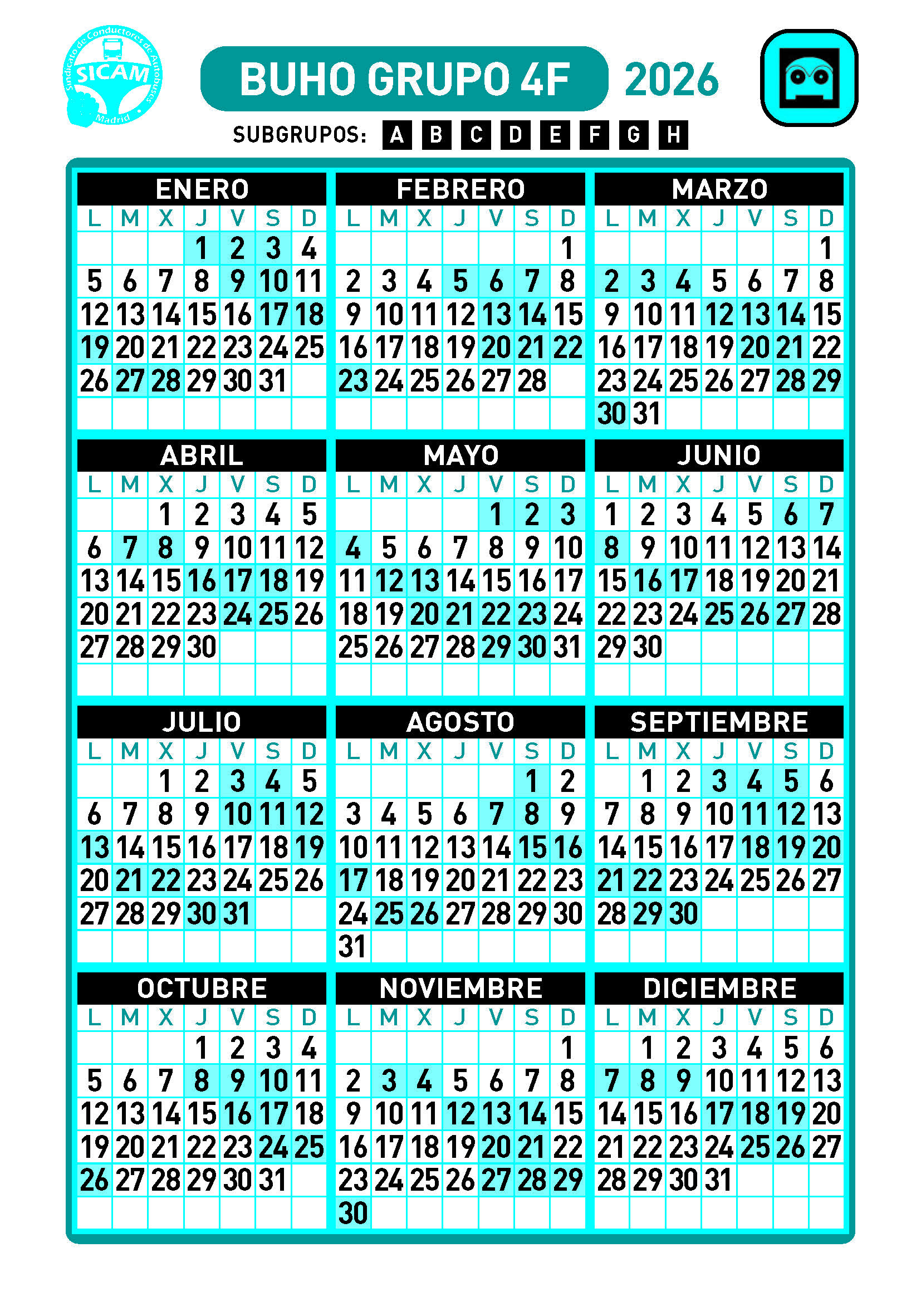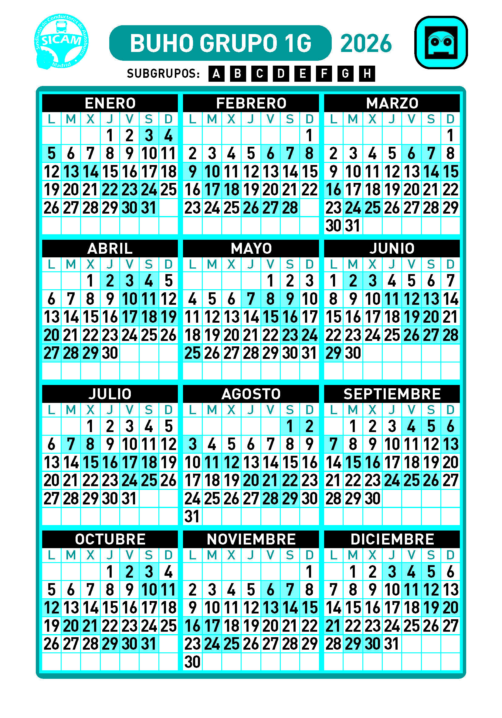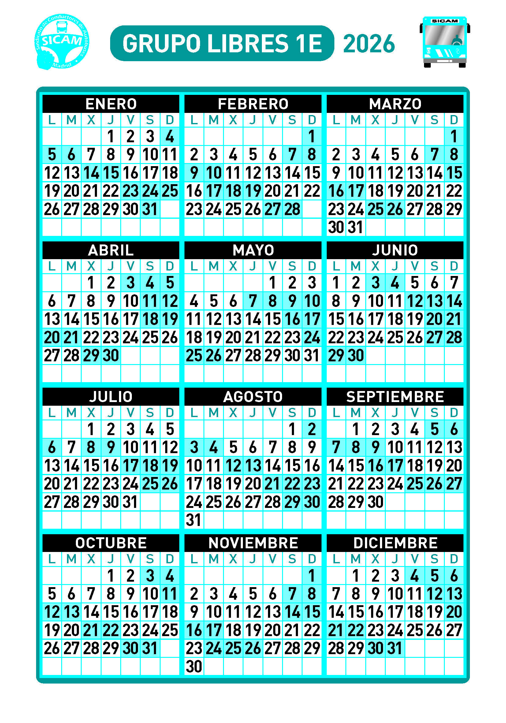 GRUPOS DE LIBRES DIURNOS 2026