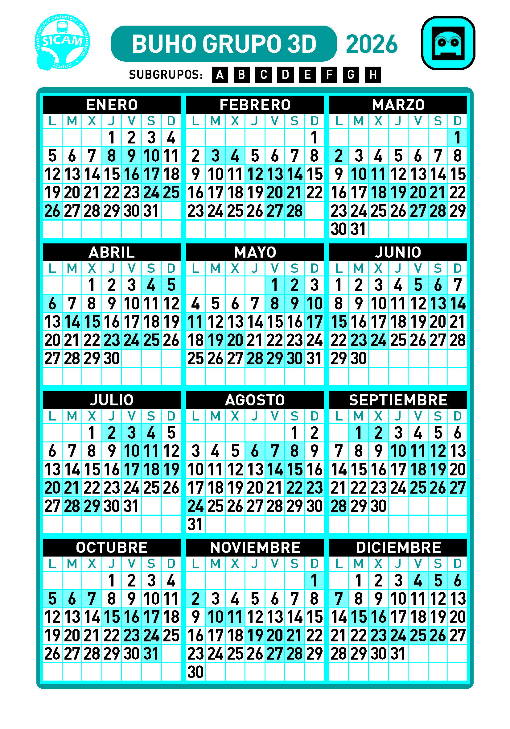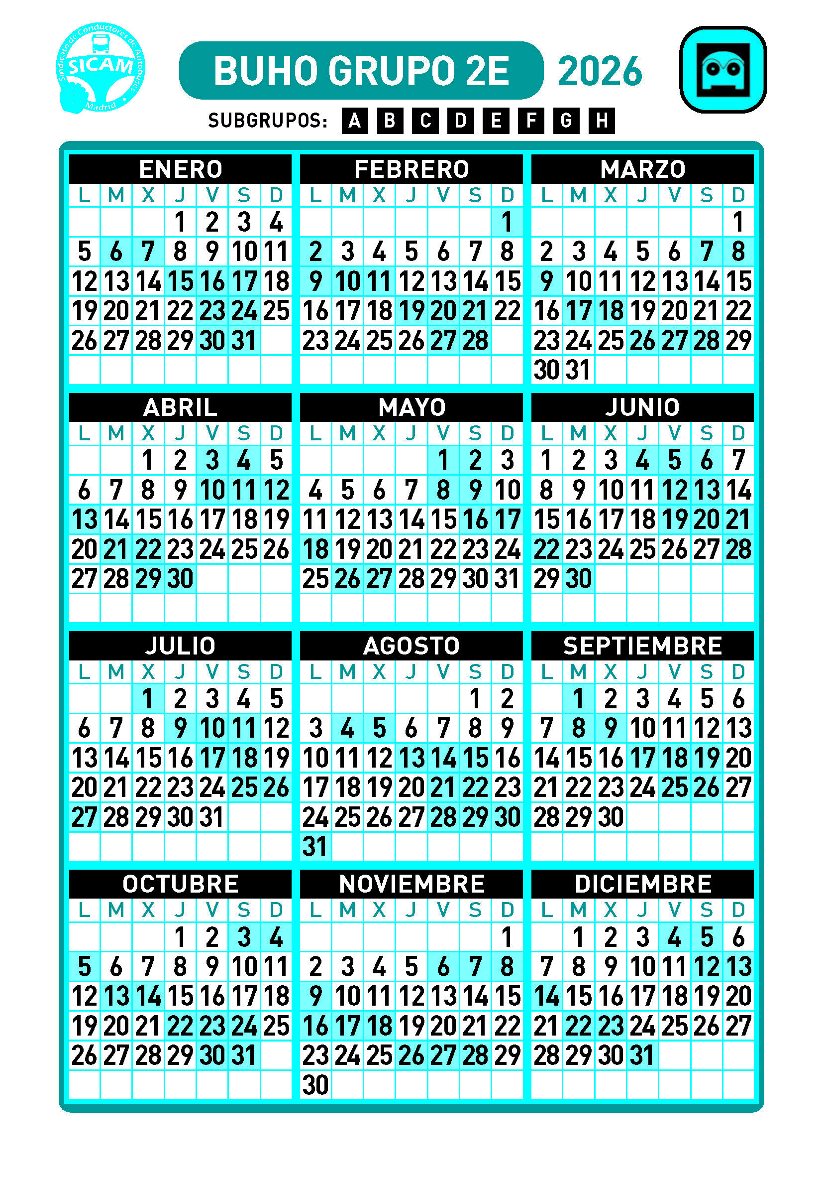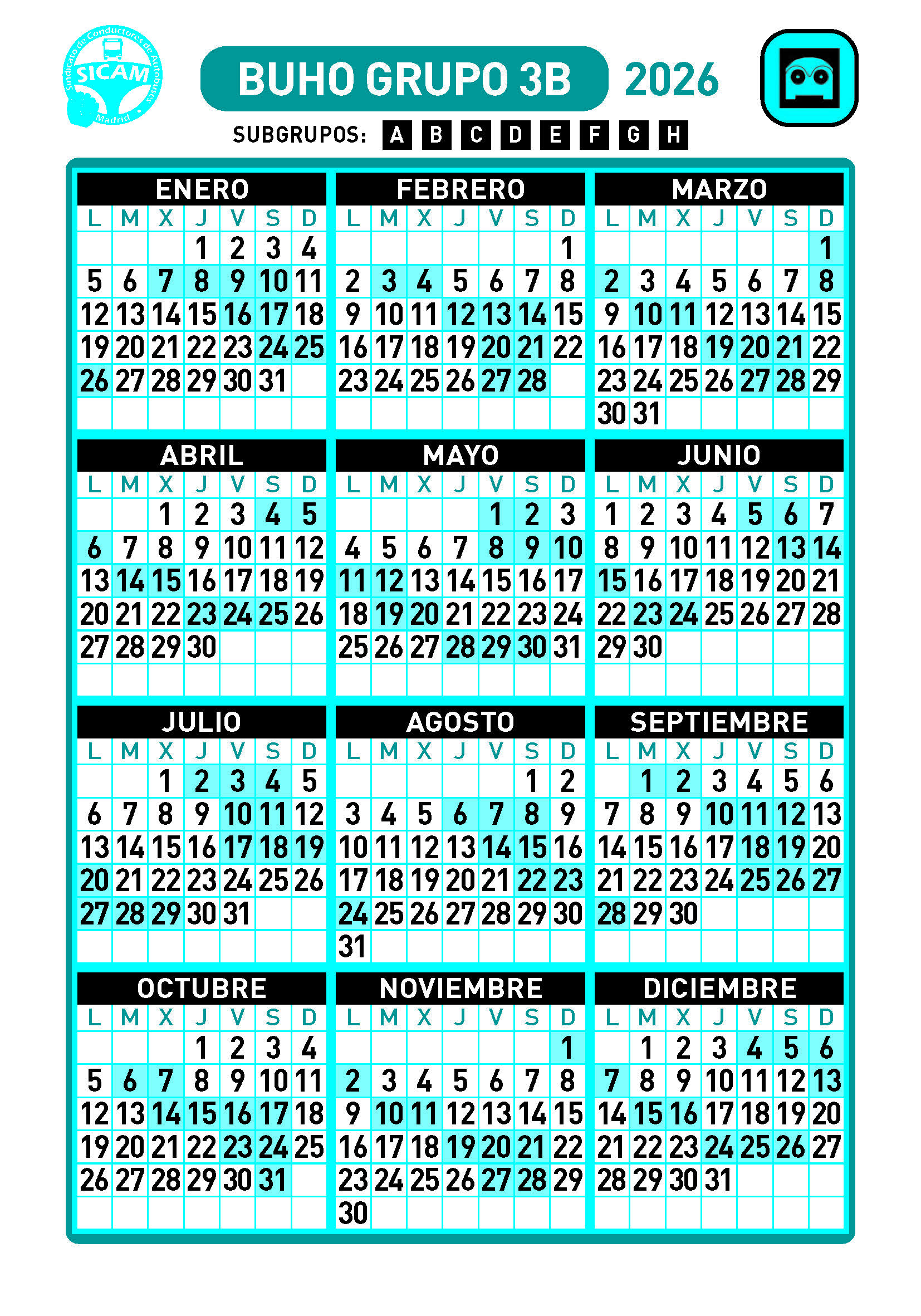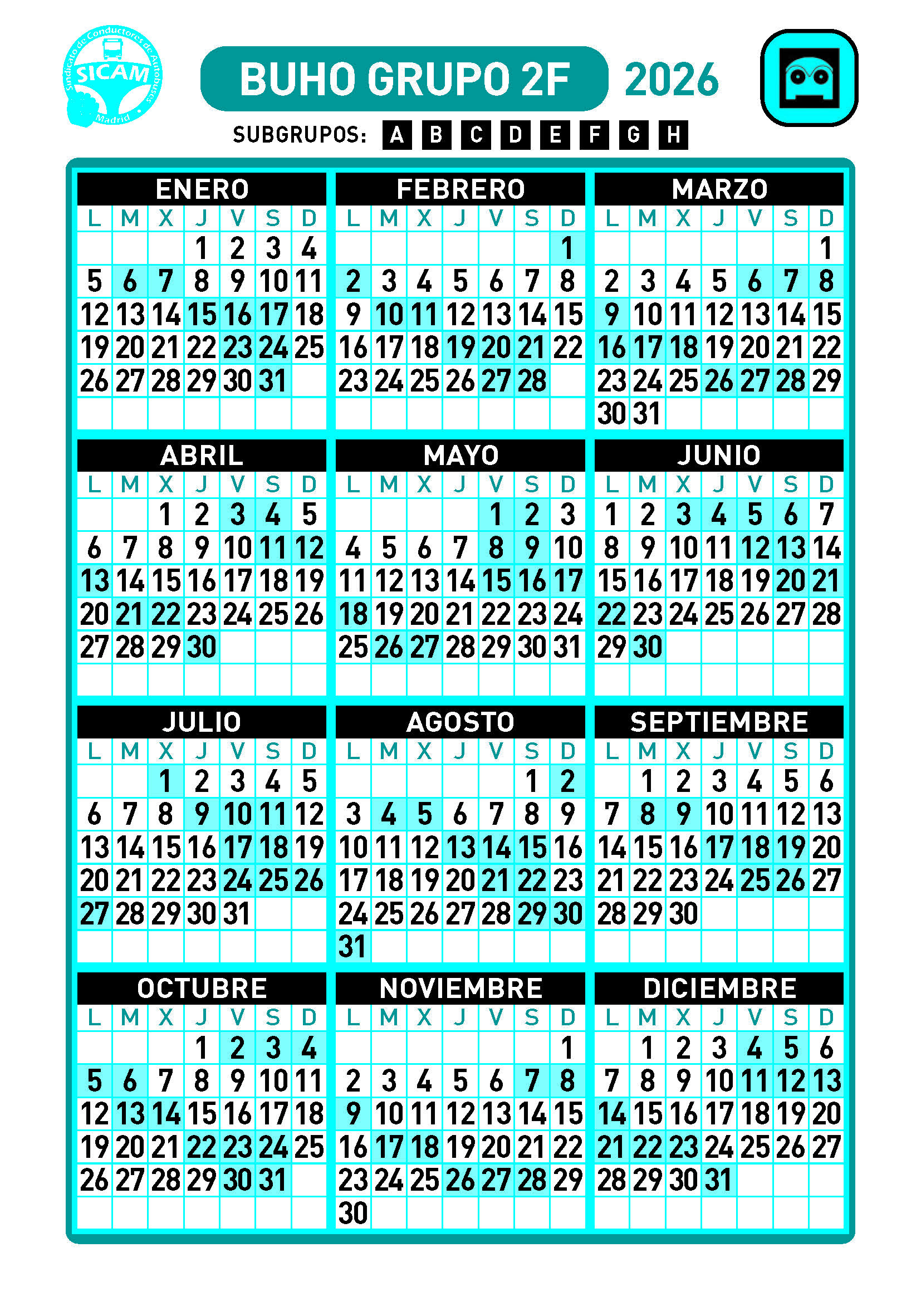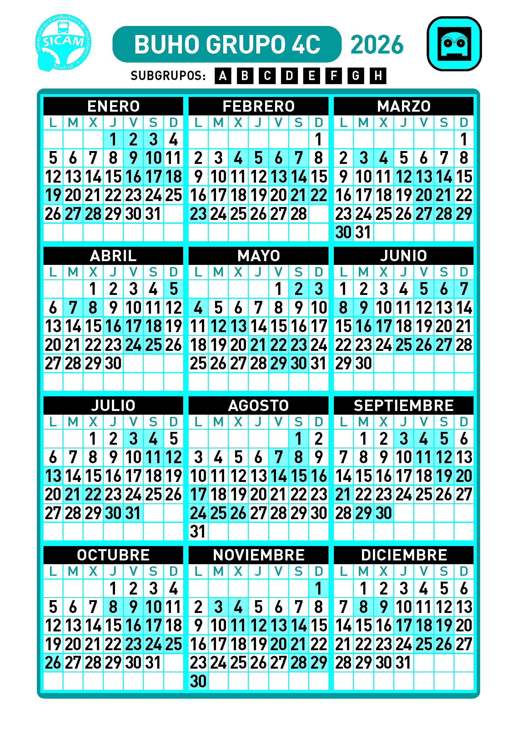 GRUPOS DE LIBRES DIURNOS 2026