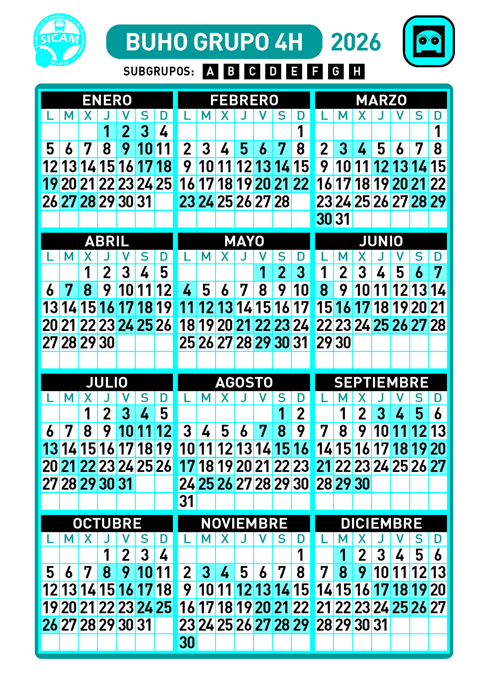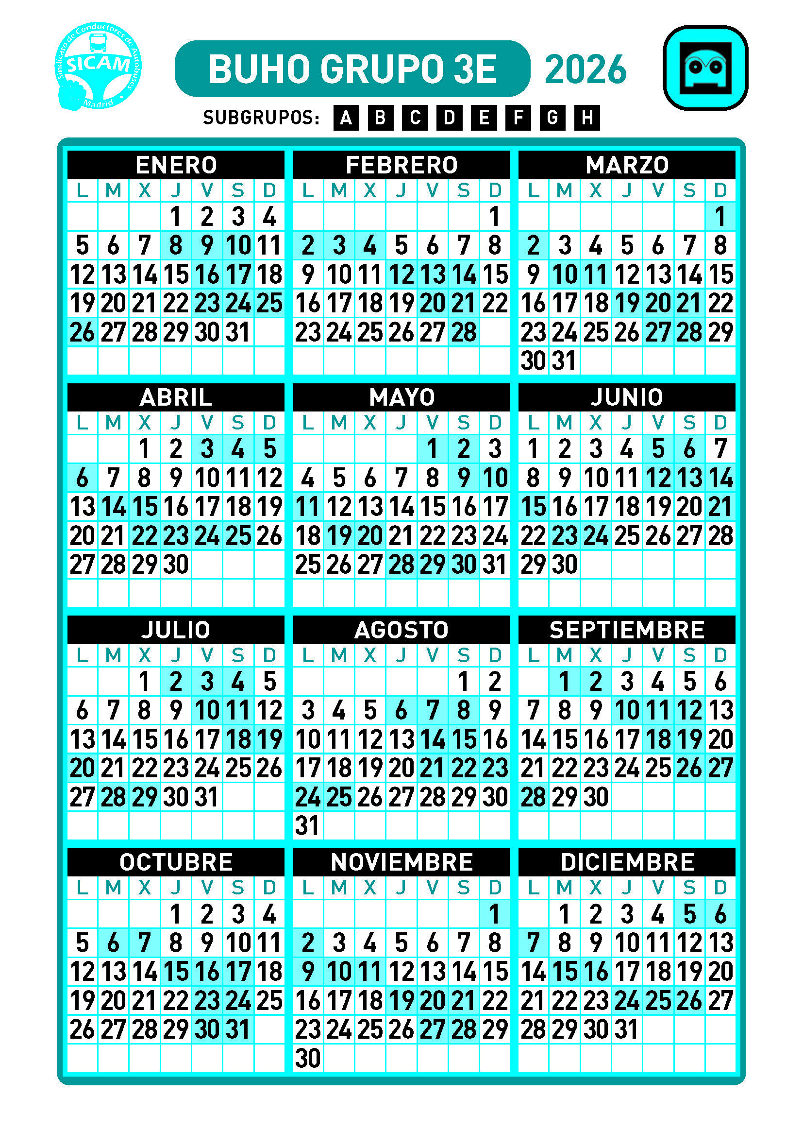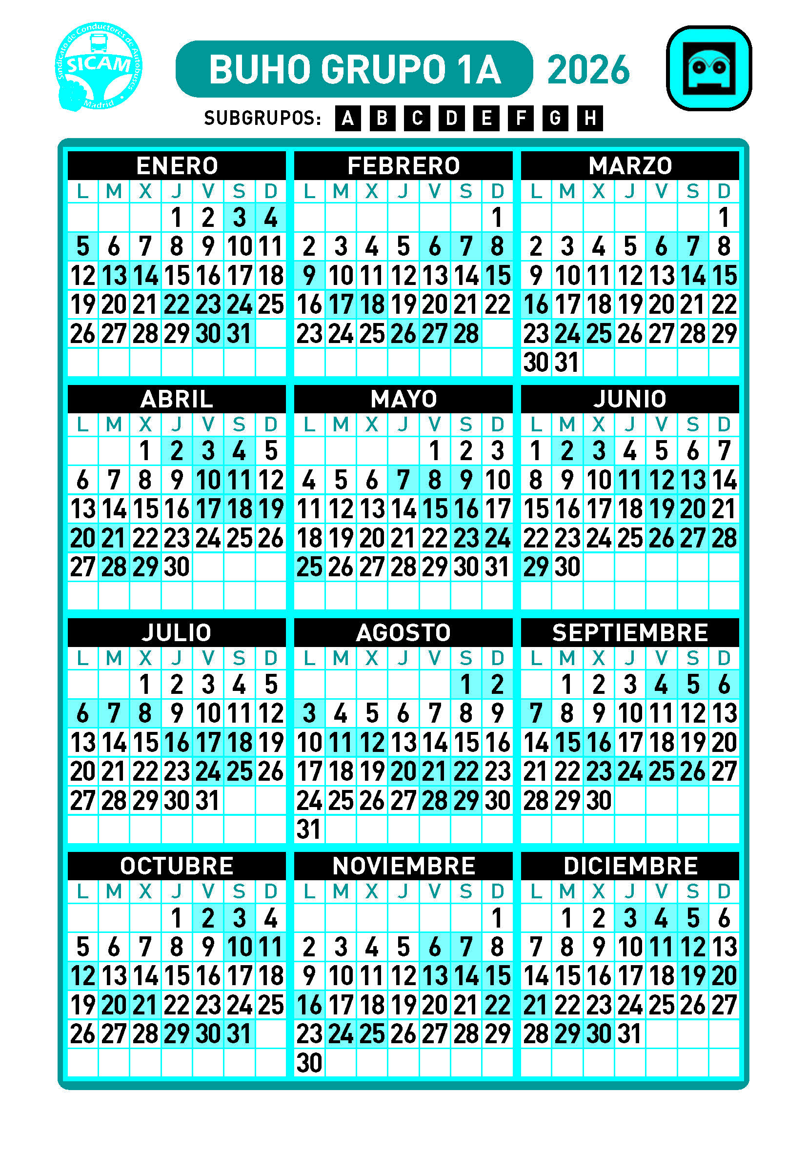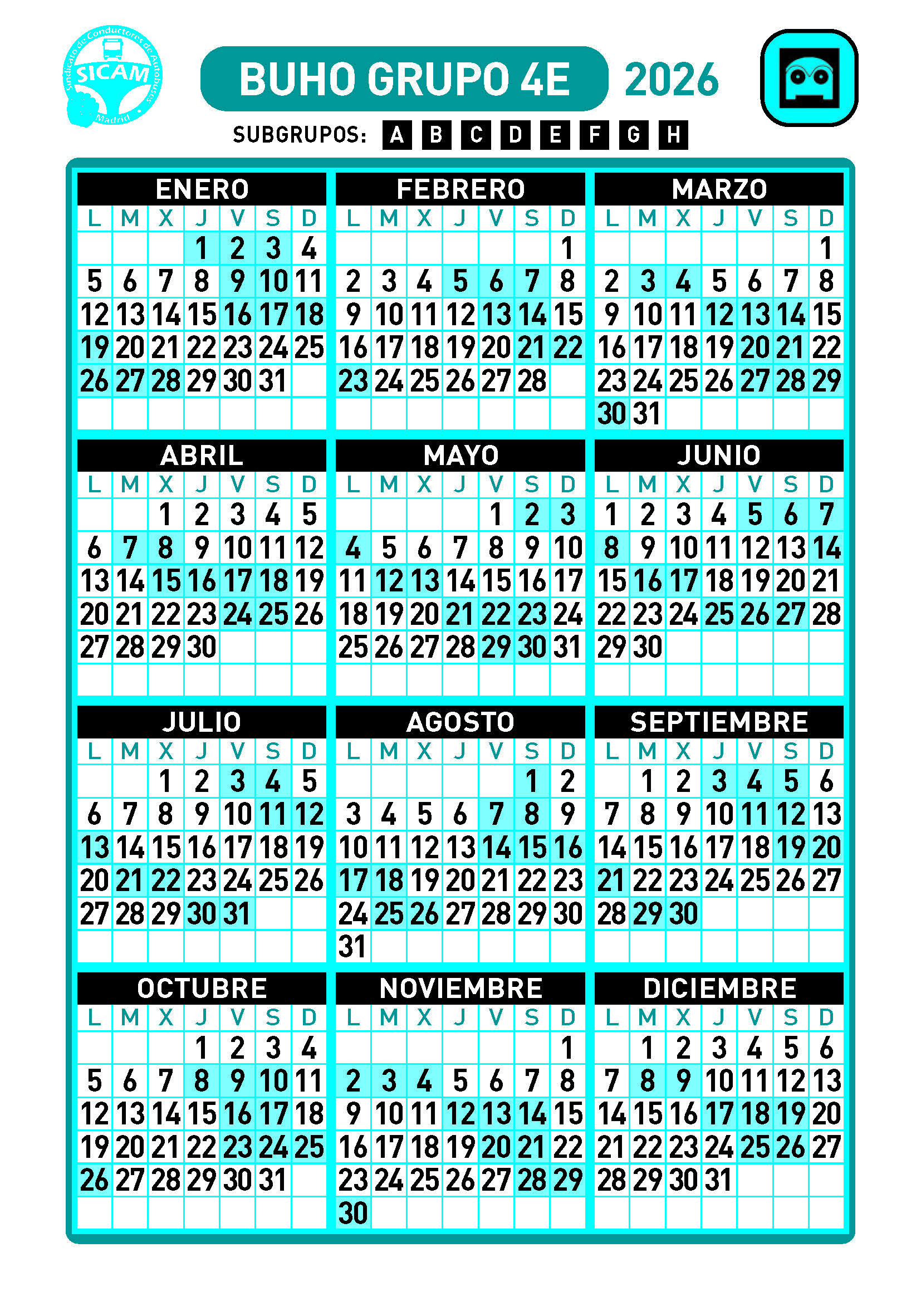 GRUPOS DE LIBRES DIURNOS 2026