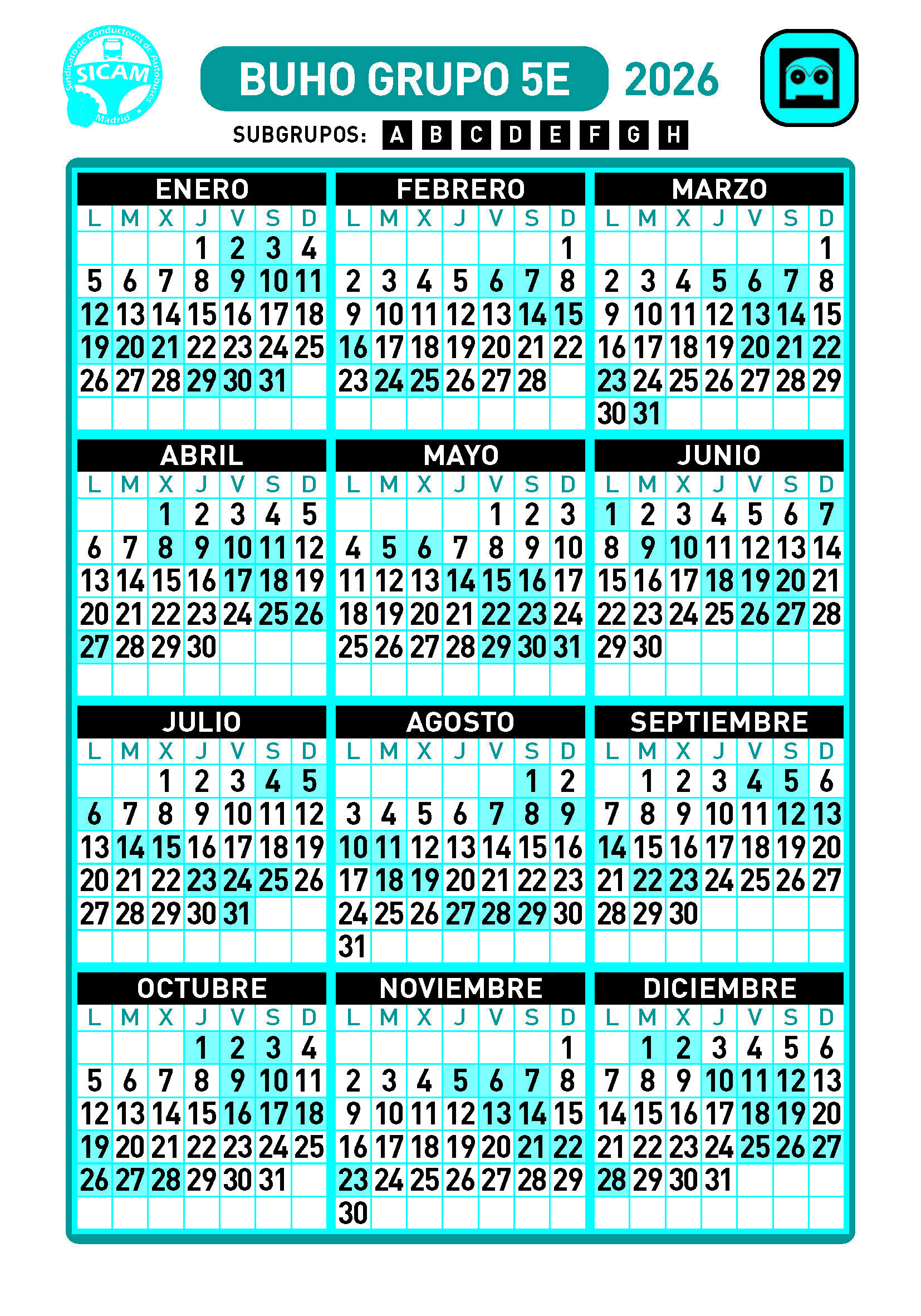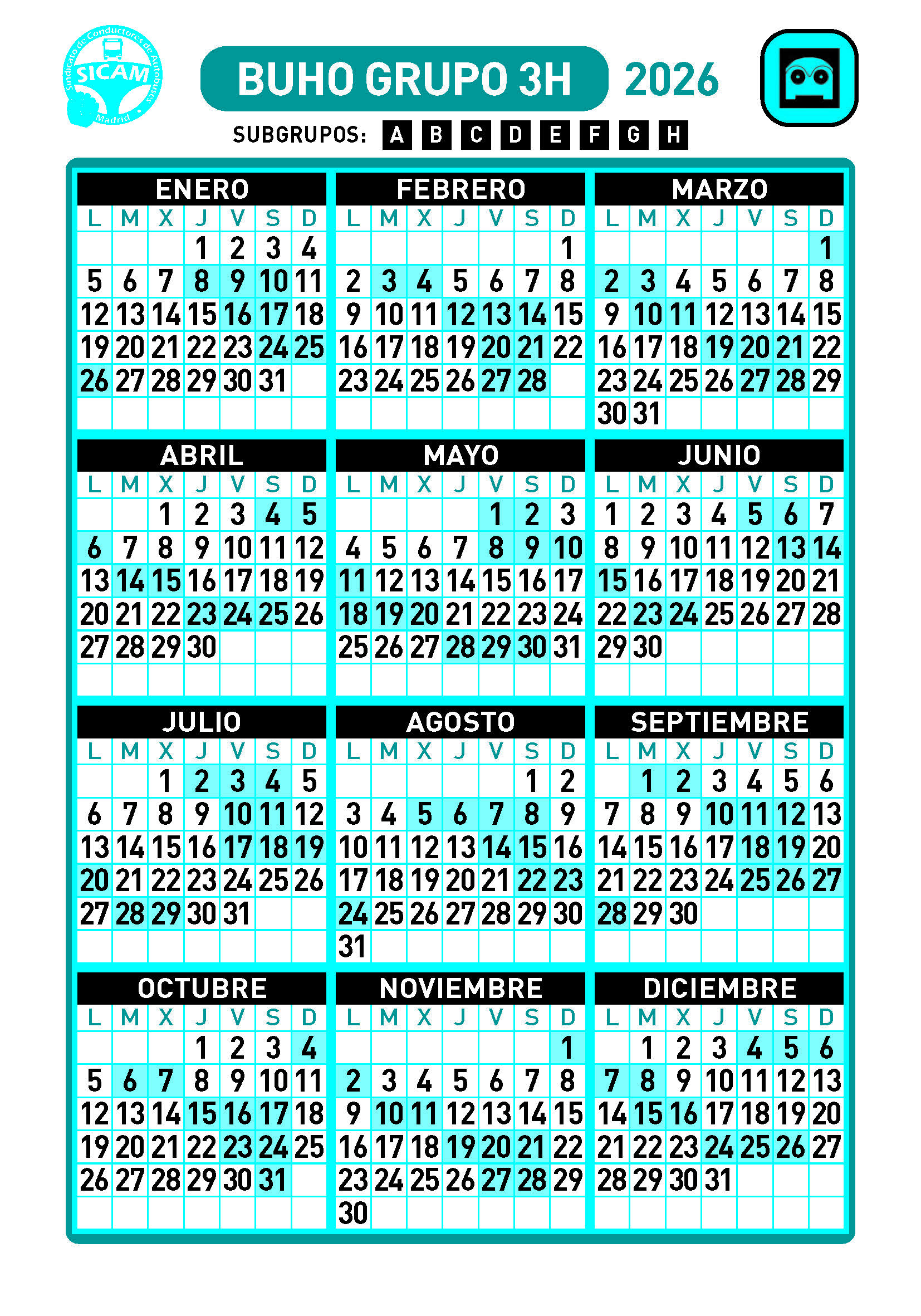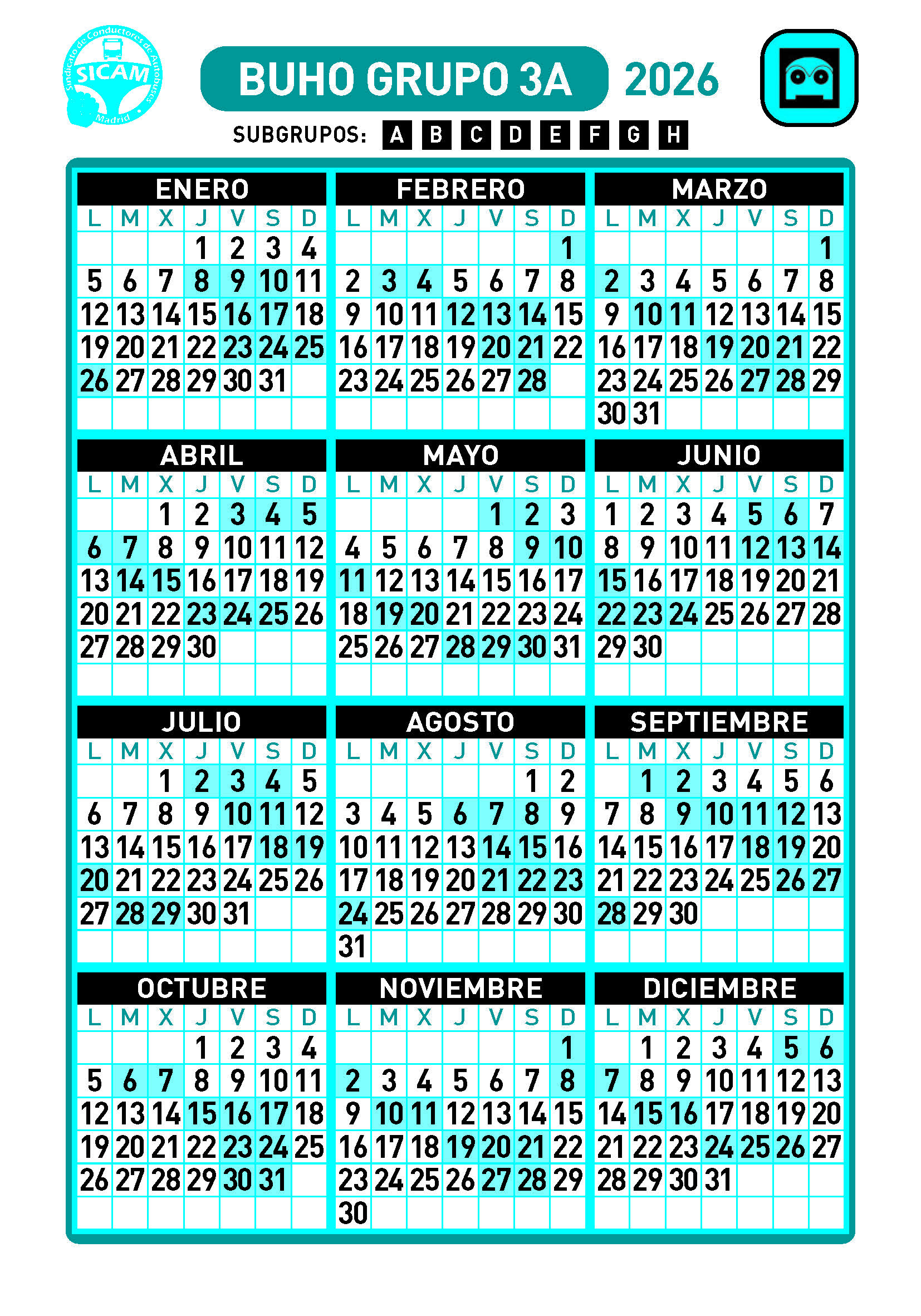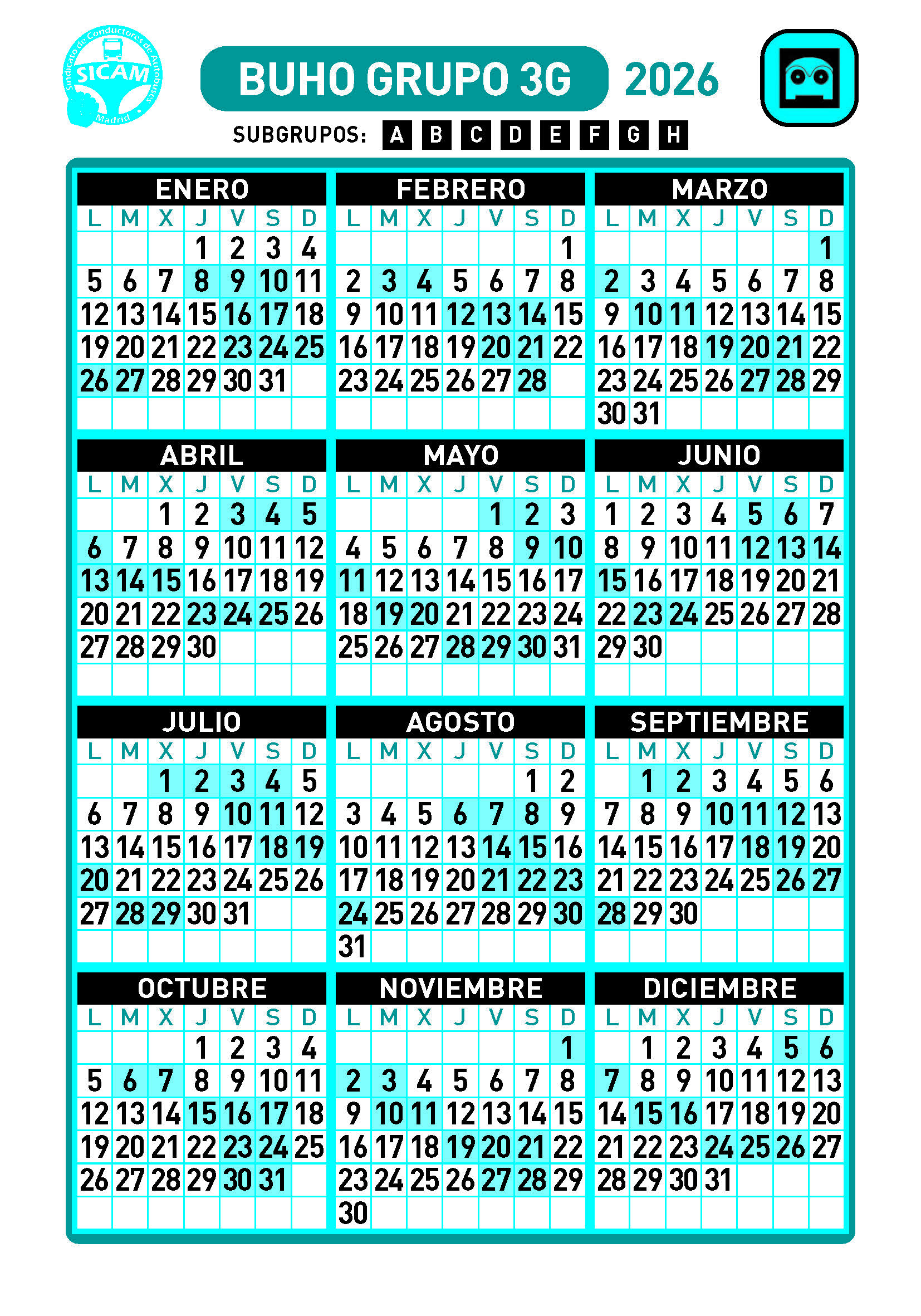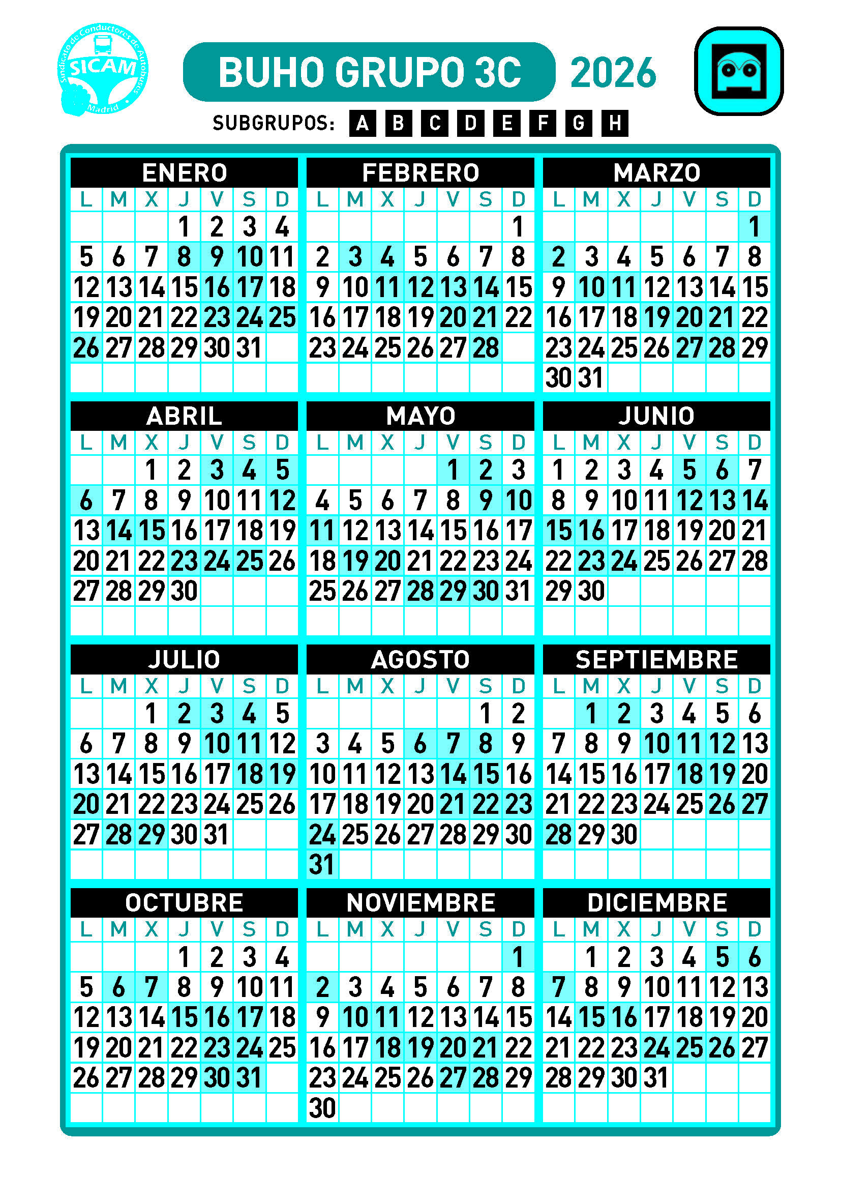 GRUPOS DE LIBRES DIURNOS 2026