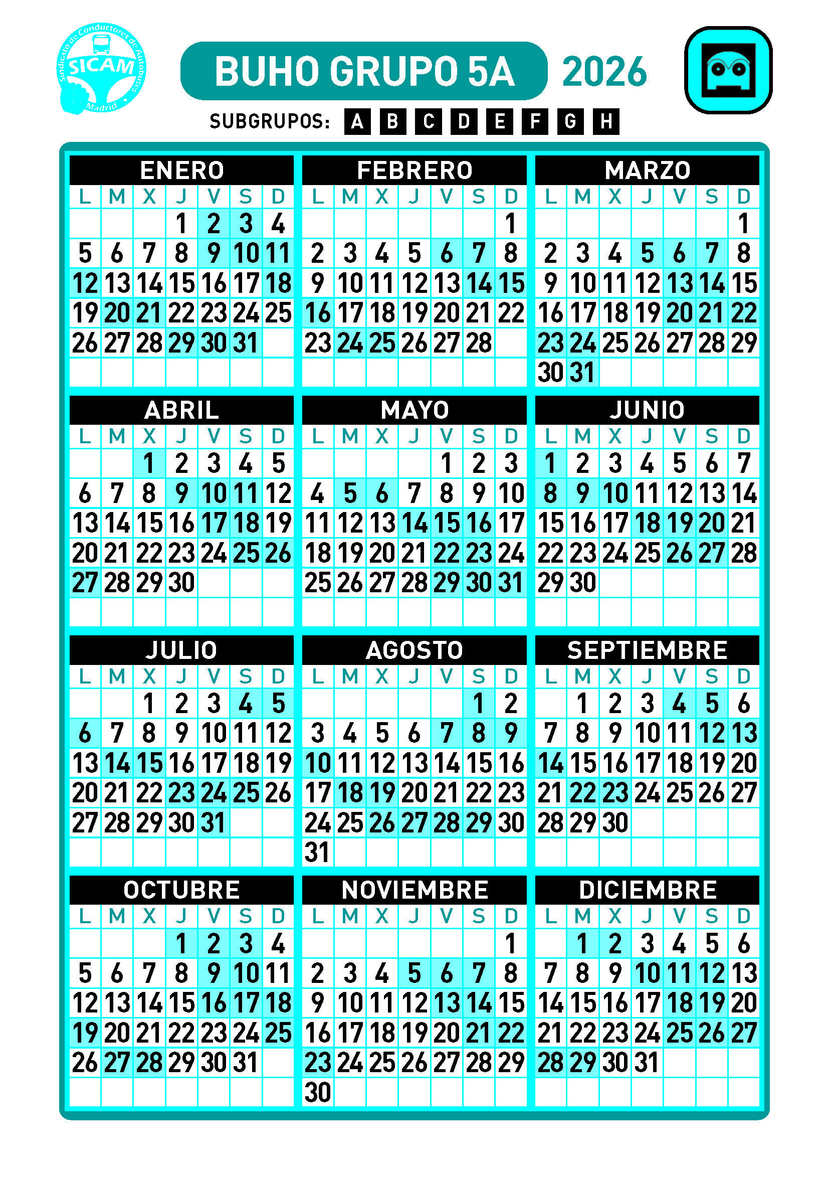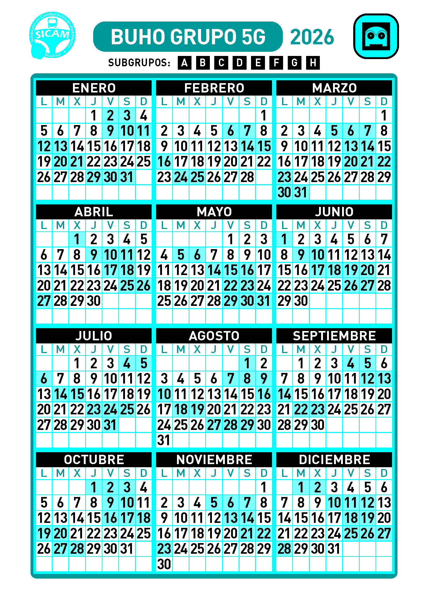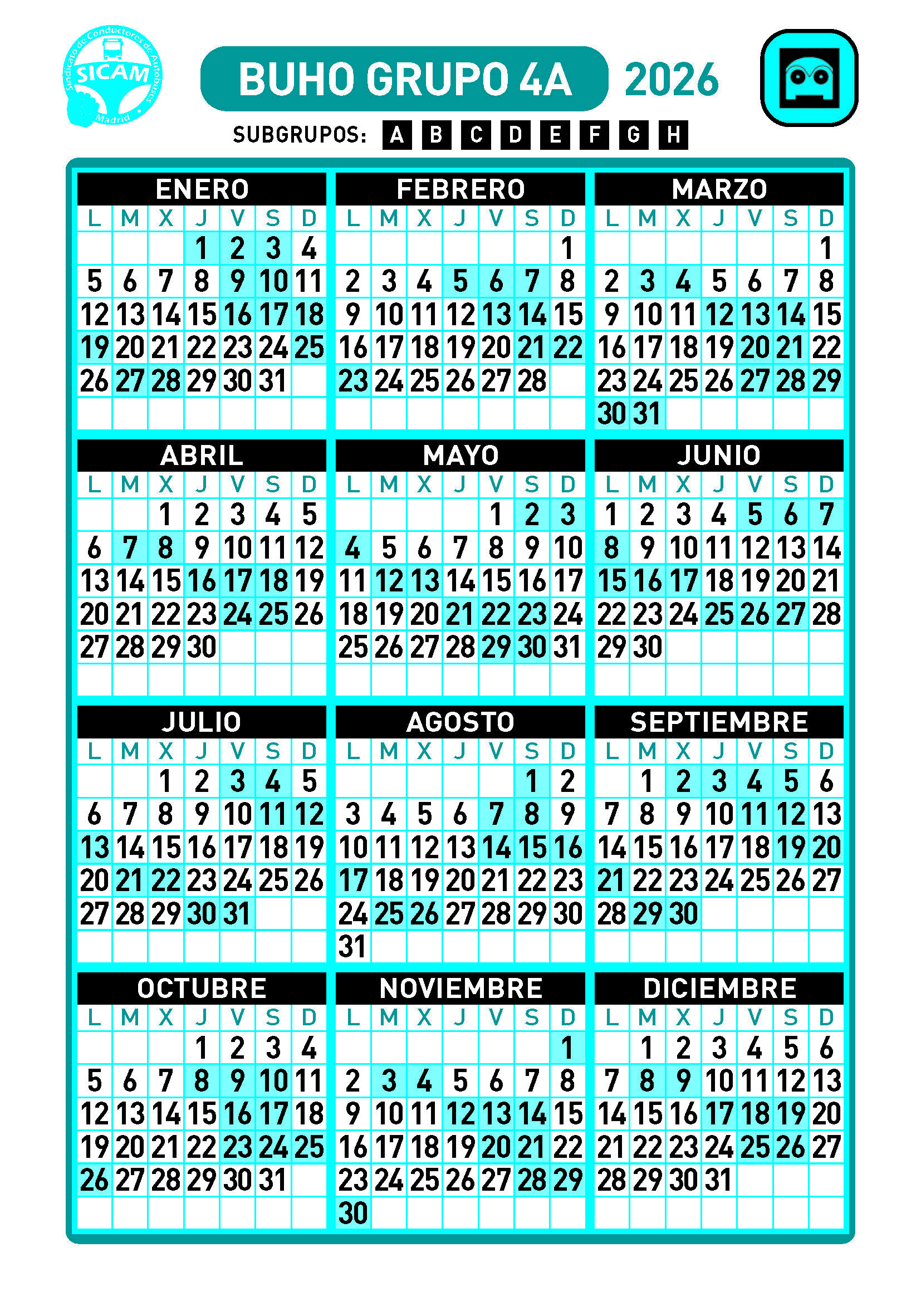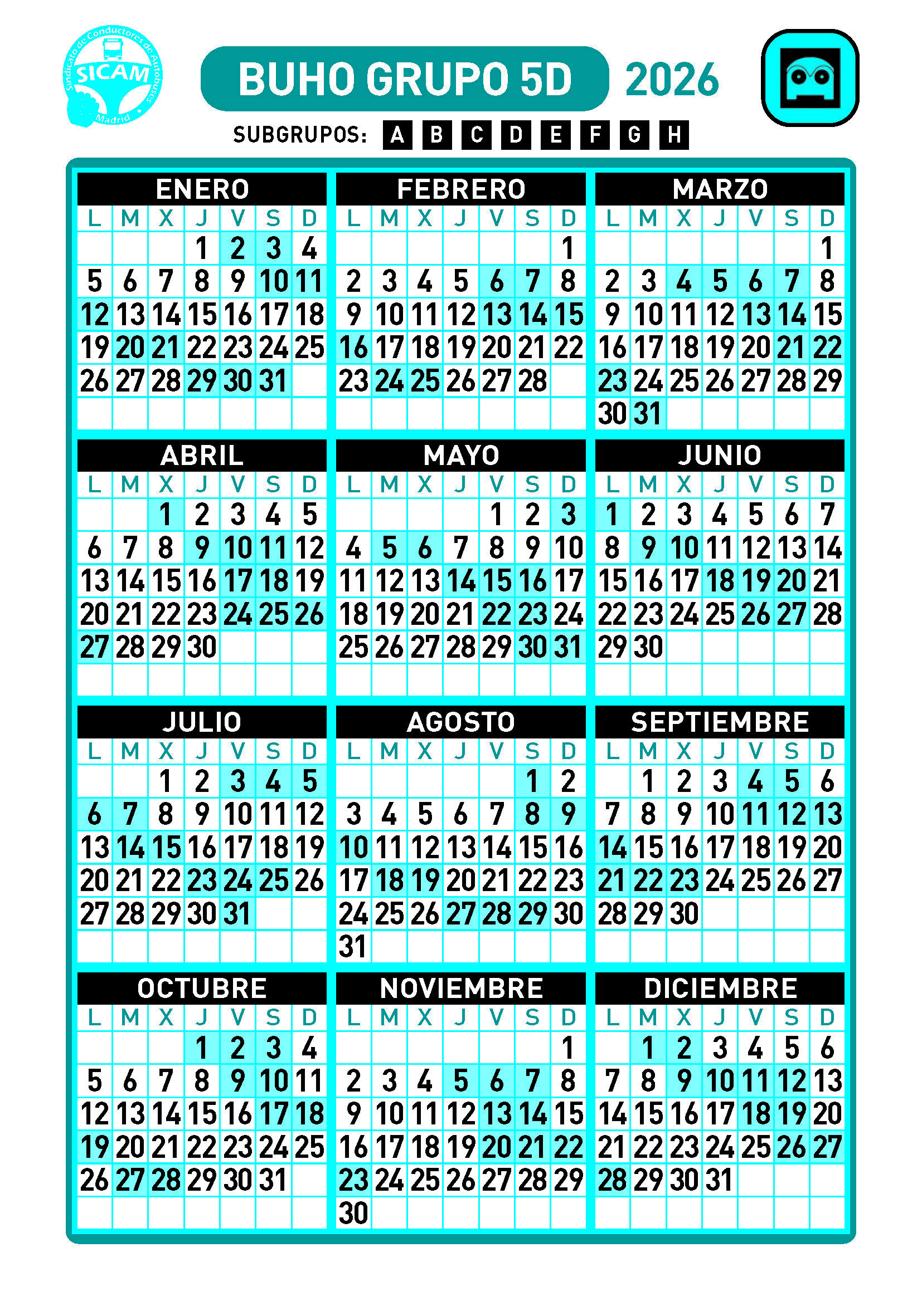 GRUPOS DE LIBRES DIURNOS 2026